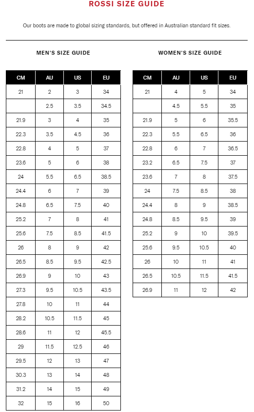 Rossi use the highest-quality full grain kip leather - it's supple, robust, and ages well. The iconic Endura sole with its Air Cushion technology contains spongy polyurethane for the ultimate underfoot comfort. *Youth Size Guide: Size 2 (Length: 21cm) = 8 Years. Size 3 (Length: 21.9cm) = 9 Years. Size 4 (Length: 22.8cm) = 10 Years